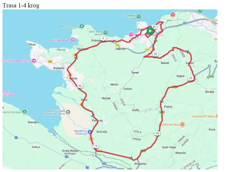 Kolesarji se bodo iz Izole podali na razgibano traso, ki vključuje tako obalni kot zaledni del Slovenske Istre. Dirka poteka skozi kraje:
