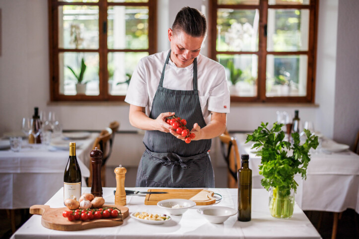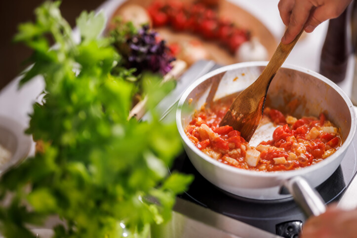 Scaldare l'olio d'oliva in una padella a fuoco medio, aggiungere la cipolla e l'aglio tritati e farli soffriggere finché saranno dorati e profumati. Aggiungere i pezzi di merluzzo e farli rosolare brevemente. Aggiungere i pomodori tagliati a cubetti, salare e pepare, versare il vino bianco e far sobbollire la salsa per circa 10-15 minuti per permettere ai sapori di combinarsi.